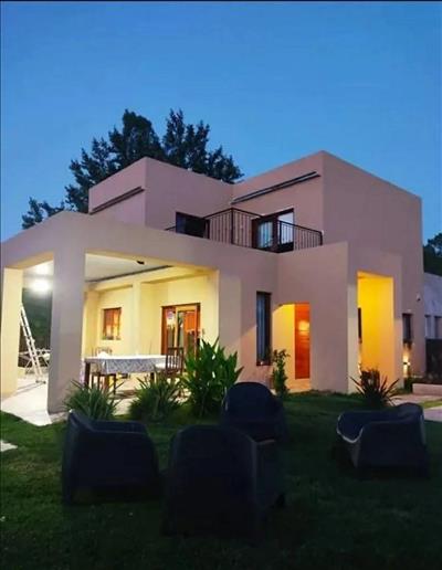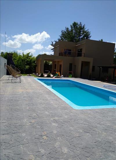 Sup. Lote: 860 metros cuadrados (20 x 43) Sup. Cub.: 147 metros cuadrados En planta baja tiene: Amplia cocina, living, comedor Baño completo Despensa Semicubierto con parrilla En planta alta tiene: Dos dormitorios, uno con terraza Baño Cuarto de guardado Pileta de fibra elevada 50 cm Semicubierto para dos autos con toilette Totalmente parquizado Servicio de luz y agua